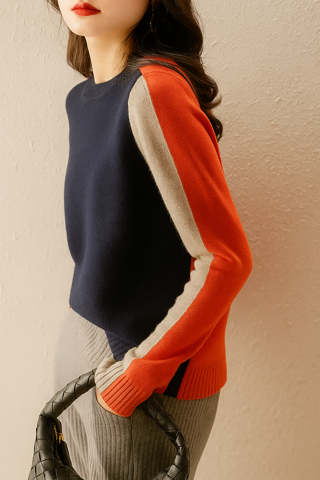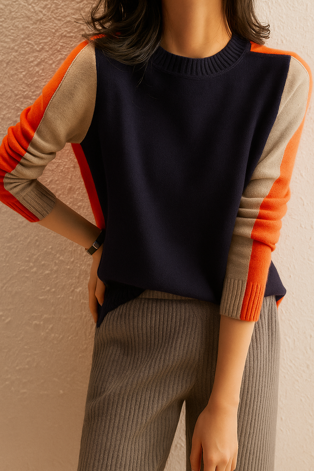 Luce un estilo fresco y contemporáneo con este suéter de punto bicolor, diseñado para quienes buscan un equilibrio perfecto entre elegancia y comodidad. Su corte clásico con cuello redondo se complementa con detalles a contraste en mangas y laterales, que estilizan la silueta y aportan un toque moderno y sofisticado.