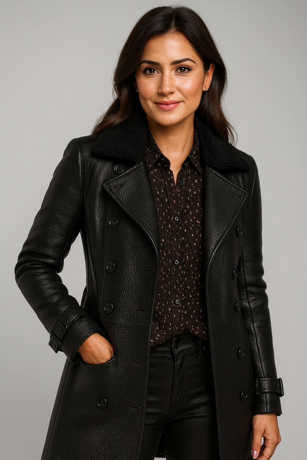 El Abrigo Verona de Cuero Texturizado para mujer es la combinación perfecta entre elegancia y fuerza. Diseñado para destacar en cualquier ocasión, este abrigo largo tipo trench ofrece un estilo sofisticado y atemporal que realza la figura con un toque moderno y poderoso. Fabricado en cuero ecológico de alta calidad, su textura premium y su acabado detallado lo convierten en una prenda esencial para la temporada otoño-invierno.